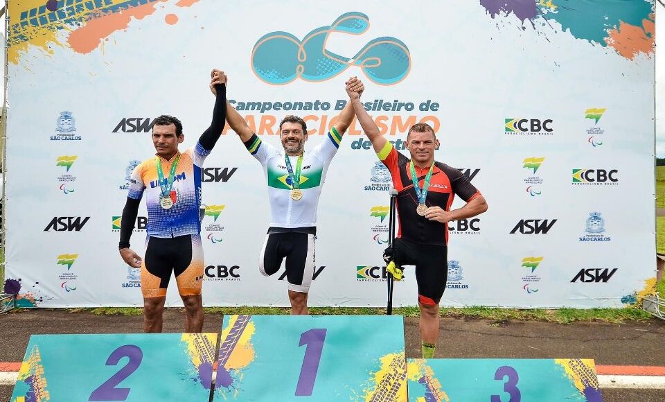 Na prova de resistência, cheguei a ter uma queda no início, por conta da chuva, mas consegui me recuperar e buscar o pelotão da minha classe e vencer”, detalha o paraciclista, sobre a competição de 66 quilômetros da Classe C2.