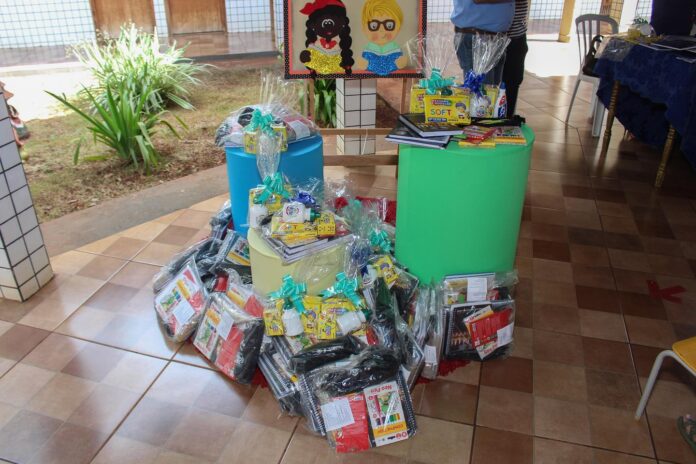 Entrega também na Escola Municipal de Educação Infantil, Maria Suave dos Santos, no Bairro Afonso Pena, com a presença do vice-prefeito Daniel Borges. Lá estudam 327 alunos, de quatro e cinco anos de idade. O gestor da escola, Dione Carlos da Silva, frisou os benefícios sociais e econômicos para as famílias das crianças na unidade, algumas com orçamento que não permitiria a compra dos kits.