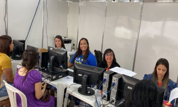 Atendimentos durante Feirão de Empregos dos Cotecs em Palmeiras de Goiás, no último mês de março (Foto: Retomada)