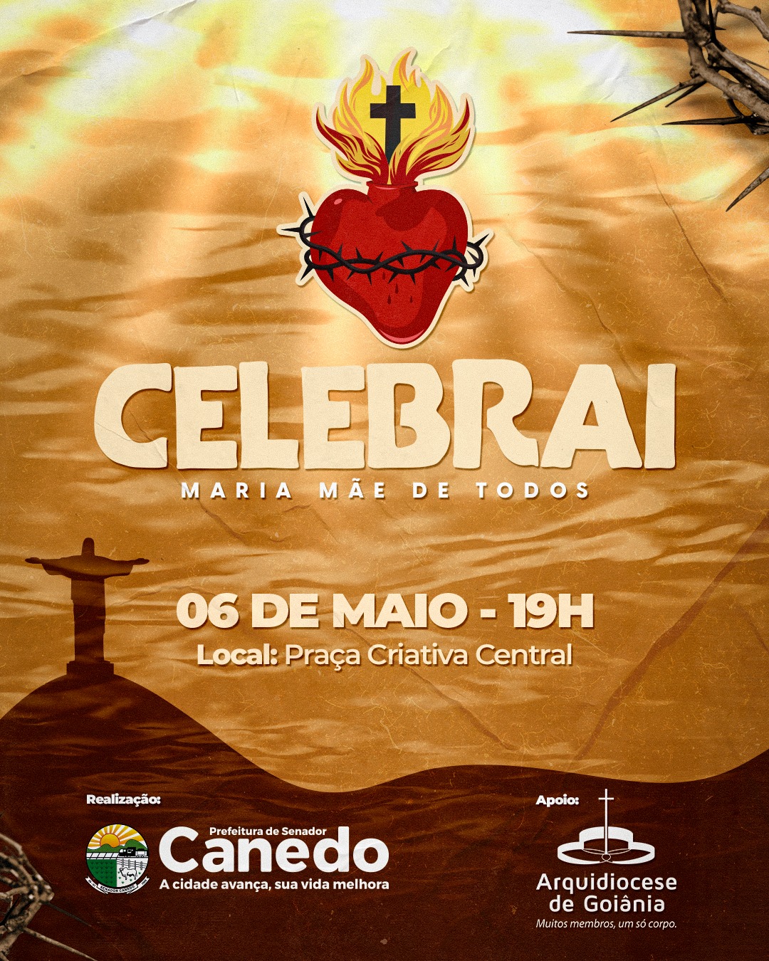 A Prefeitura de Senador Canedo, em parceria com a Arquidiocese de Goiânia, realiza a primeira edição do evento religioso ‘Celebrai’, que busca reunir a comunidade católica por meio de momentos de oração, música e pregação para celebrar a fé.