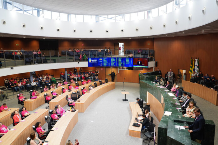 A Assembleia Legislativa do Estado de Goiás (Alego) promoveu, na manhã desta quarta-feira, 4, sessão solene em homenagem ao Outubro Rosa e entrega de Certificado do Mérito Legislativo. Na ocasião foram homenageadas mulheres que enfrentam ou enfrentaram o câncer de mama quanto a comunidade que lhes presta apoio.