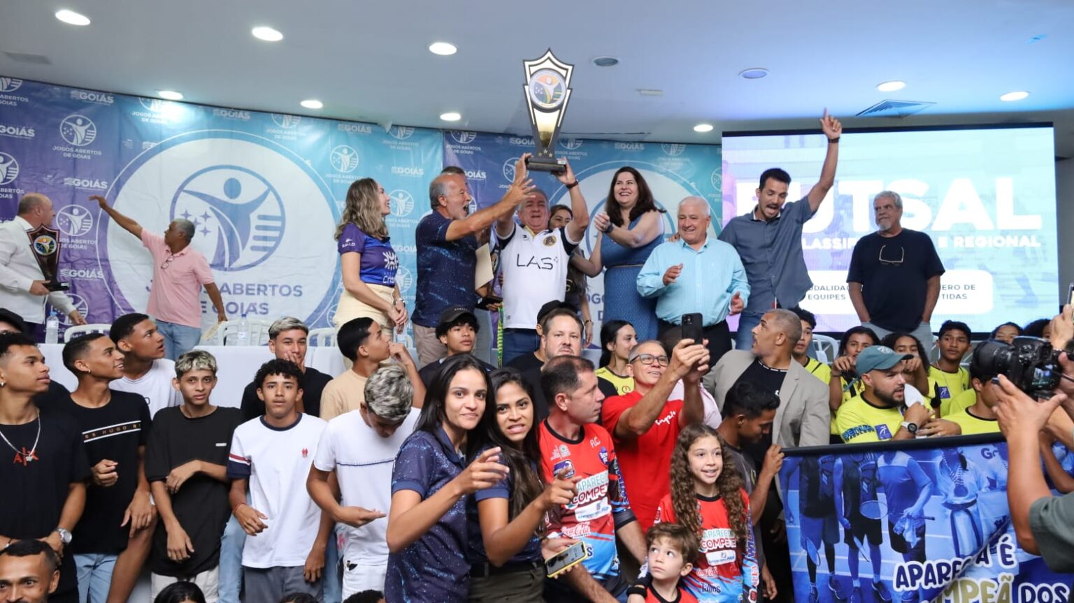 Na manhã deste sábado, 27, Aparecida de Goiânia recebeu a premiação pela conquista do tetracampeonato dos Jogos Abertos de Goiás. A solenidade de entrega foi realizada no auditório do Centro de Excelência do Esporte, em Goiânia, e contou com a presença do prefeito Vilmar Mariano; da primeira-dama e secretária de Assistência Social, Sulnara Santana e do secretário de Esporte, Lazer e Juventude, Gerfeson Aragão.