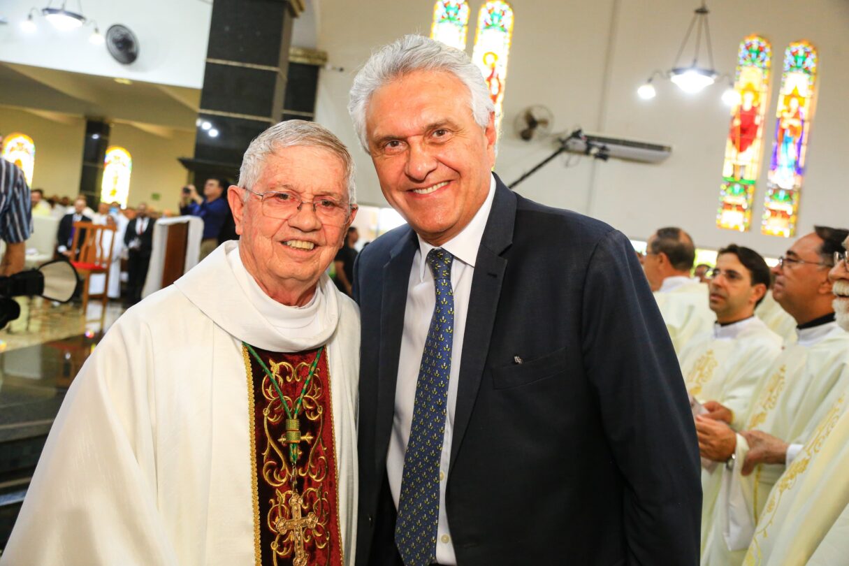 Governador Ronaldo Caiado e Dom Antônio Fernando Brochini que faleceu aos 77 anos (Foto: Secom)