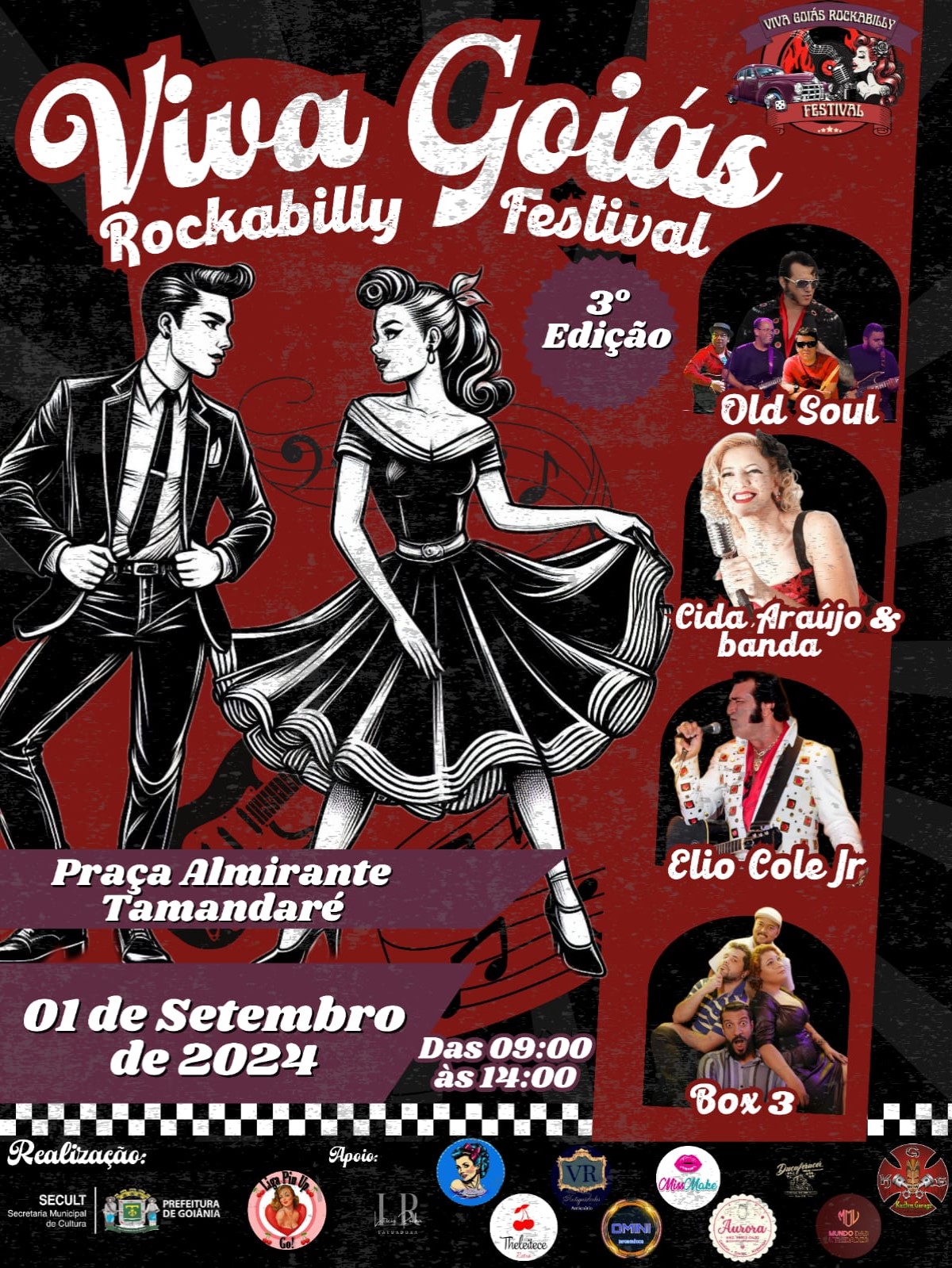 Você está convidado(a) para o Viva Goiás Rockabilly, um evento imperdível que acontecerá na Praça Tamandaré no dia 01 de setembro de 2024,  das 09:00 às 14:00. Venha fazer parte desta experiência única e aproveite tudo o que terá preparado especialmente para você!