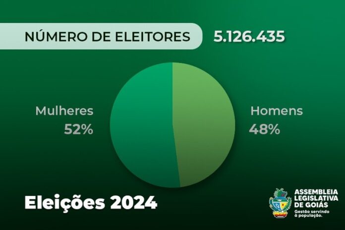 Neste ano, as mulheres continuam sendo maioria, totalizando 52% da população goiana, o mesmo porcentual de 2020. Atualmente, Goiás conta com 57.271 eleitores de 16 e 17 anos de idade. A faixa etária dominante do eleitorado goiano em 2024 é de 45 a 59 anos.