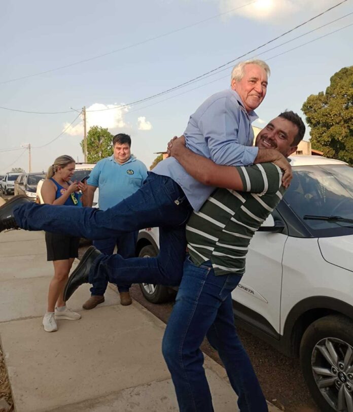 Vice-prefeito Mizael Brandão e o prefeito reeleito Gilmar comemoram o resultado oficial, vitória com 2.024 votos de frente.