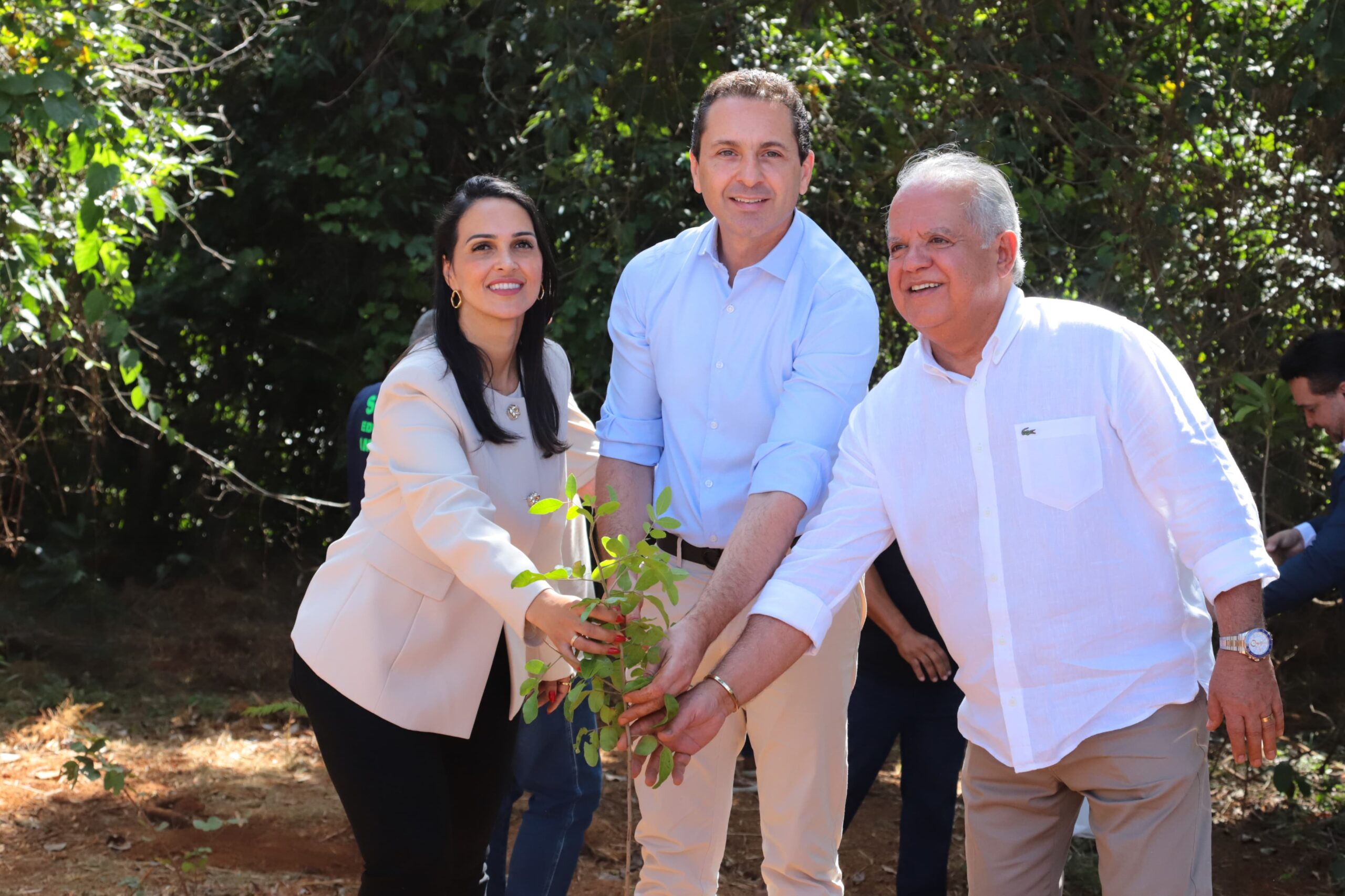 Ao lado do vice-prefeito João Campos, Leandro participou do plantio de mudas nativas do Cerrado e destacou a importância da parceria entre o poder público e a iniciativa privada na preservação ambiental