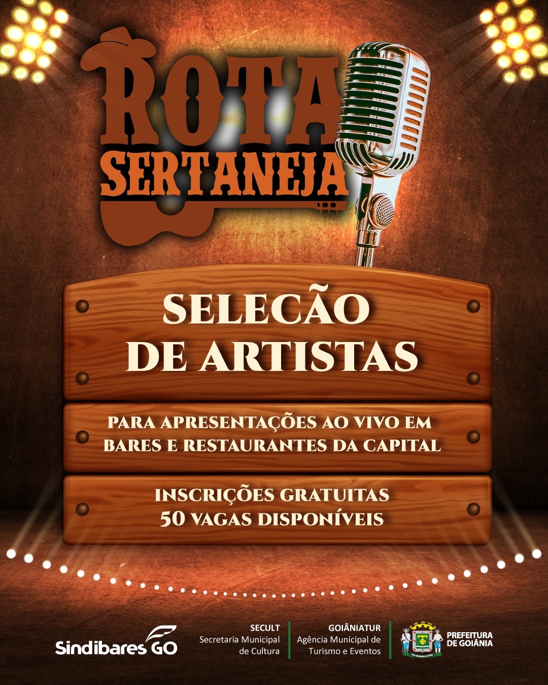 A Prefeitura de Goiânia, por meio da Secretaria Municipal de Cultura (Secult) e da Agência Municipal de Turismo e Eventos (GoiâniaTur), abriu inscrições para o chamamento público que vai selecionar novos talentos da música sertaneja. A iniciativa integra a Rota Sertaneja, projeto que leva apresentações ao vivo de artistas locais para bares e restaurantes da capital.