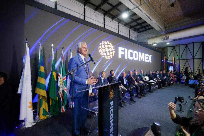 Governador Ronaldo Caiado participa de abertura da Feira Internacional de Comércio Exterior do Brasil Central, a Ficomex 2025 (Foto: Júnior Guimarães)