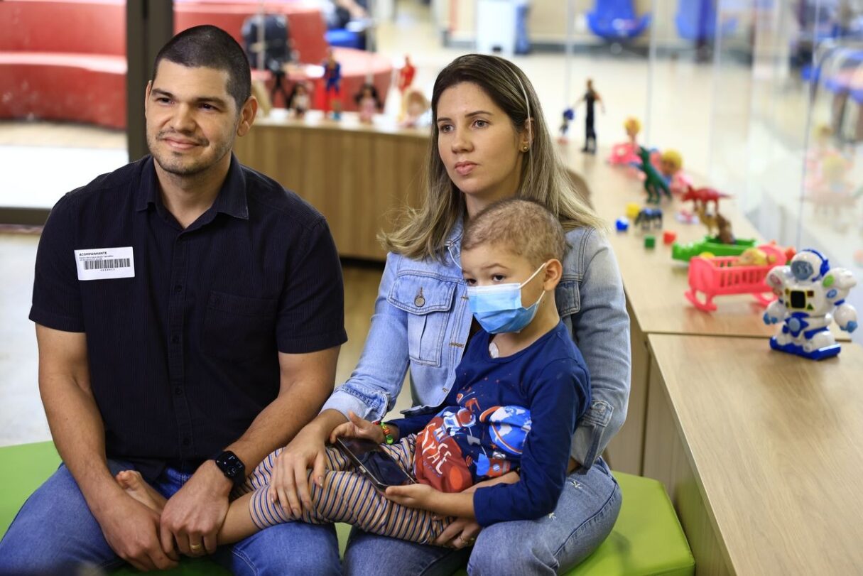 Cora oferece estrutura moderna, com tecnologia de ponta e já é modelo de acolhimento humanizado. Na imagem acima, o médico patologista Pedro Henrique Assis e a esposa Morgana Morais acompanham o filho Olavo Carvalho Morais, de 5 anos, que trata de linfoma linfoblástico na unidade (Fotos: Secom-GO)