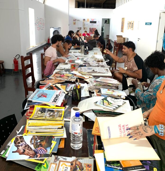 A programação será aberta já no dia 1°, com a oficina “Cola Aqui”, ministrada por Jocy Júnior em dois turnos. A proposta é criar colagens a partir do acervo da biblioteca da EAV, usando fotocópias em preto e branco como base para composições visuais. A mesma atividade se repete no dia 15 de outubro.