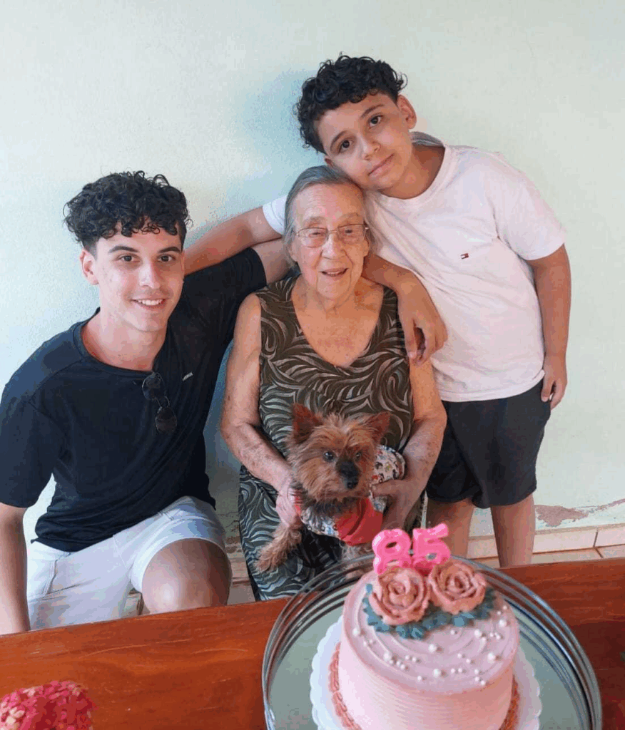 Os momentos mais inesquecíveis foram ao lado das crianças, onde a energia positiva transbordava. As brincadeiras com os netos de Dona Nenzica, Felipe e Enzo, eram um show de gritos, risos e, claro, latidos alegres, que viravam momentos fotográficos incríveis, como no aniversário de 85 anos da avó.