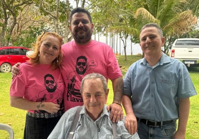 ”A maior das construções: o amor em família. ❤️ O sorriso e o abraço fraterno selam a comemoração dos 50 anos de Luiz Flávio, que celebra a vida e a satisfação de ter ao seu lado a presença e a bênção de seu pai, o Sr. Humberto Prado (sentado), junto aos irmãos, a arquiteta Eliane Prado e o também engenheiro Humberto Filho. Este é o alicerce que pavimentou uma vida de vitórias e pontes de amizade. Um instante que vale mais que ouro!”