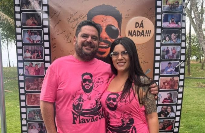 “Eu e minha esposa NÚBIA nos sentimos muito felizes por estarmos aqui hoje, comemorando os 50 anos de vida do meu grande parceiro Flavão. Nossa amizade, fruto da união dos nossos filhos VYNNICIUS e GABRIELA, a cada dia nos traz mais felicidade.”