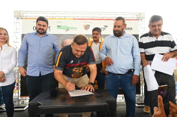 Evento contou com o lançamento dos núcleos esportivos “Crias da Bola” e com a assinatura da ordem de serviço para recuperação de 30,72 km de vias