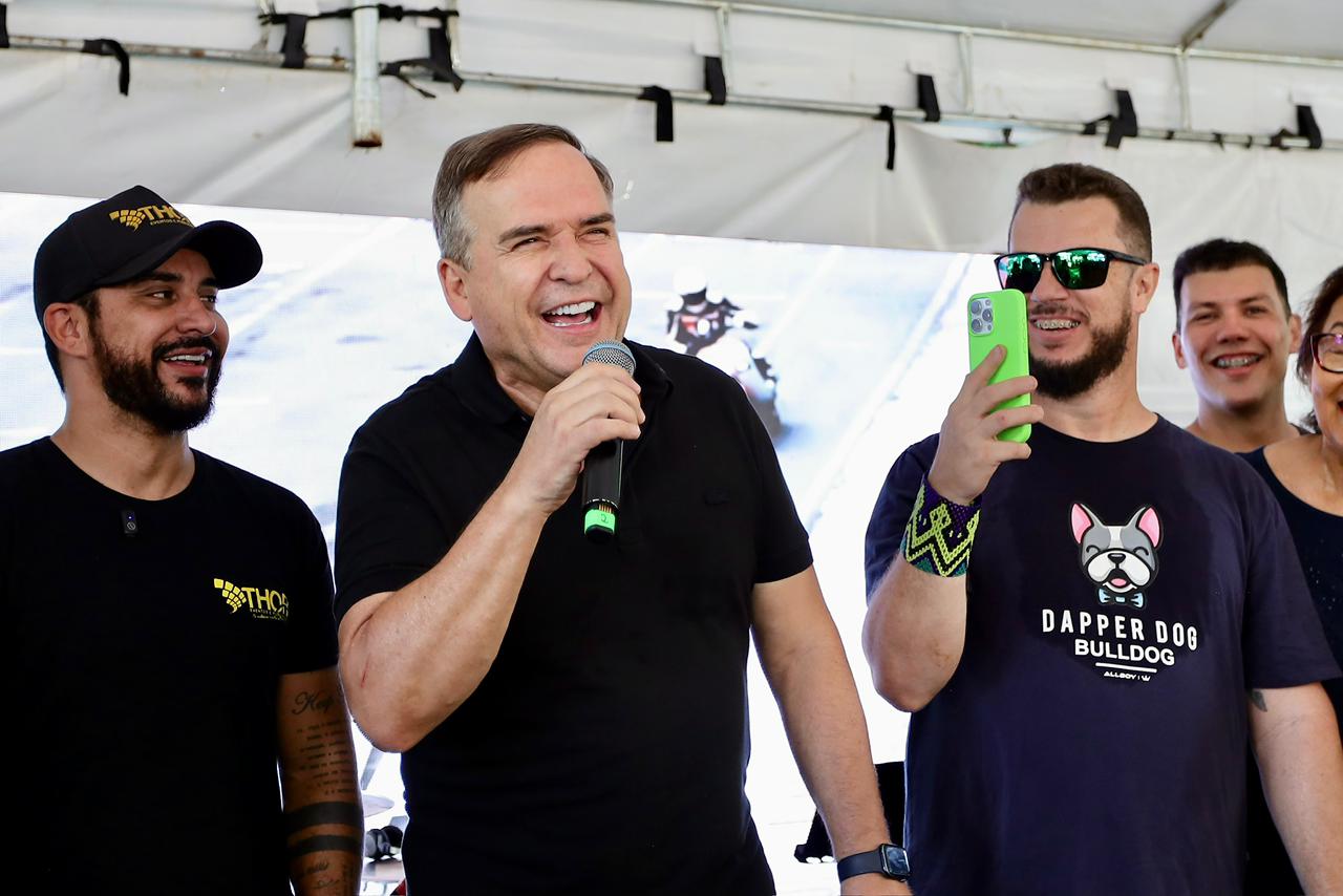 O prefeito Sandro Mabel lançou, neste domingo (1°/03), o Motocão 2026, evento que uniu motociclismo, conscientização e solidariedade em defesa da causa animal. Realizada na Praça Tamandaré, no Setor Oeste, a programação contou com entrada solidária mediante a doação de dois quilos de ração, além da participação de organizações não governamentais e profissionais da área veterinária.